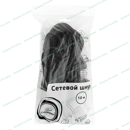 Кабель питания Gembird 10.0м, VDE(0.75мм), черный, с зазем., пакет