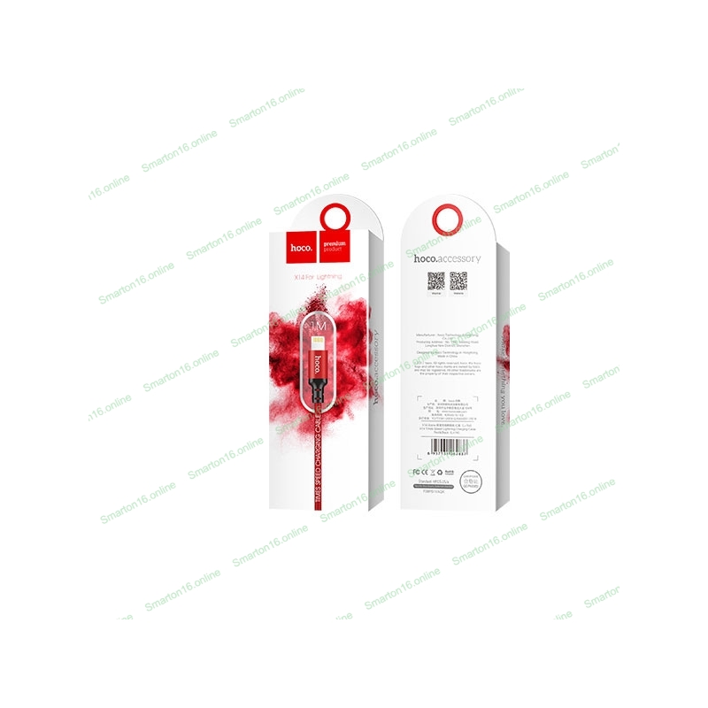Кабель HOCO X14 USB 2.0, AM/Lightning M, черно-красный, 1м