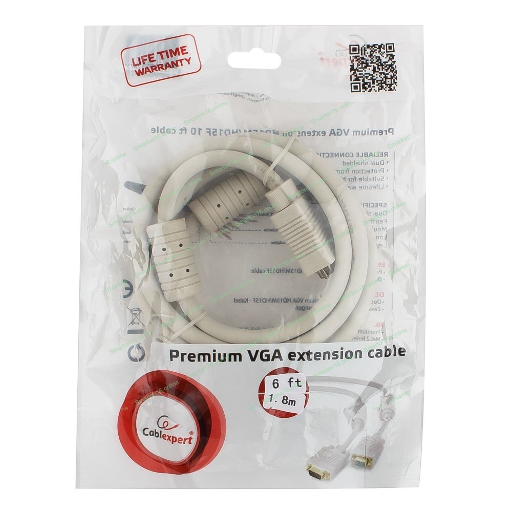 Кабель Gembird удлинитель VGA Premium,1.8м,15M/15F,тройн. экран,феррит. кольца,пакет