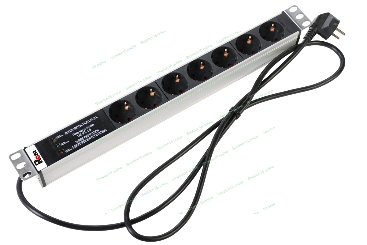 Блок розеток Rem-16 с фил. и инд., 7 Shuko, 16A, алюм., 19", шнур 3 м. (R-16-7S-FI-440-3)