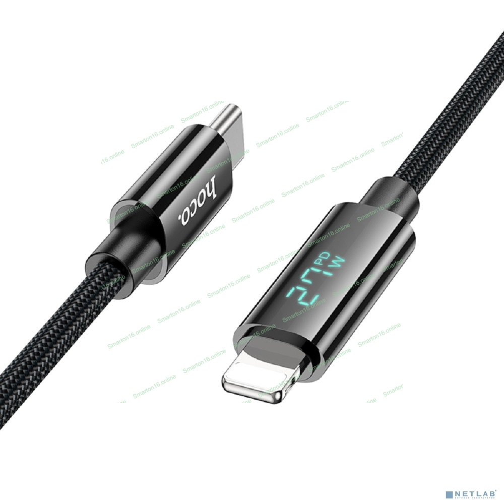 Кабель USB2.0 Hoco Type-C/Lightning, 2.4А, с дисплеем, U125, 1.2м, черный, коробка