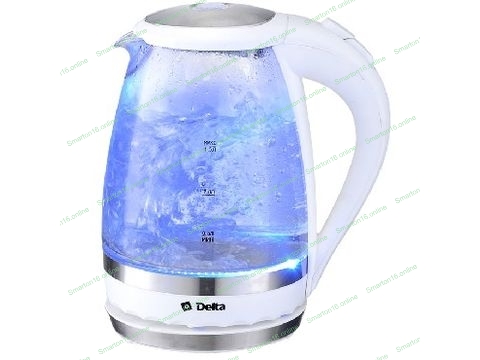 Чайник электрический Delta DL-1202 корпус из жаропрочного стекла, белый, 2200Вт, 1,5л