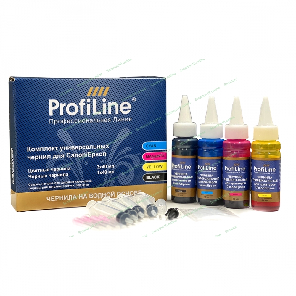 Комплект ун-ных чернил для принтеров Canon/Epson, Black/Cyan/Magenta/Yellow 4x40 мл водн ProfiLine
