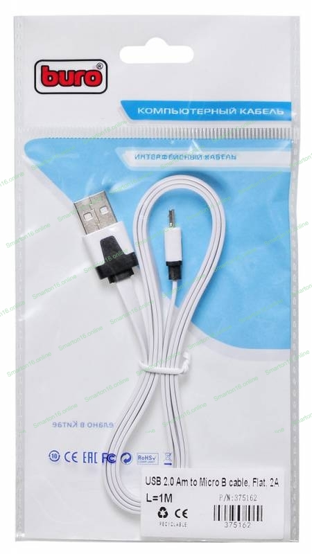 Кабель USB2.0 Buro USB A (m)/microUSB (m) 1м (BHP MICROUSB 1M FLAT), белый