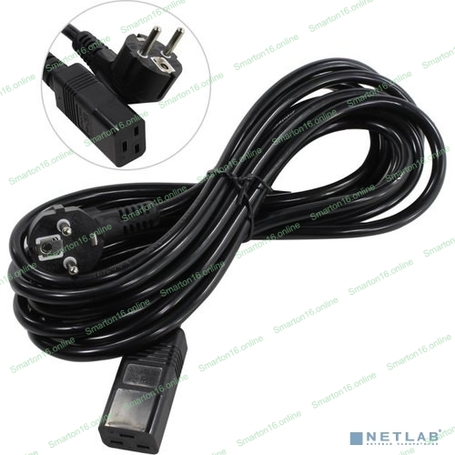 Кабель питания ExeGate Power PC19-5P (Евровилка Schuko->С19) VDE-250V-3*1.5-CU, черный, 16А, 5м