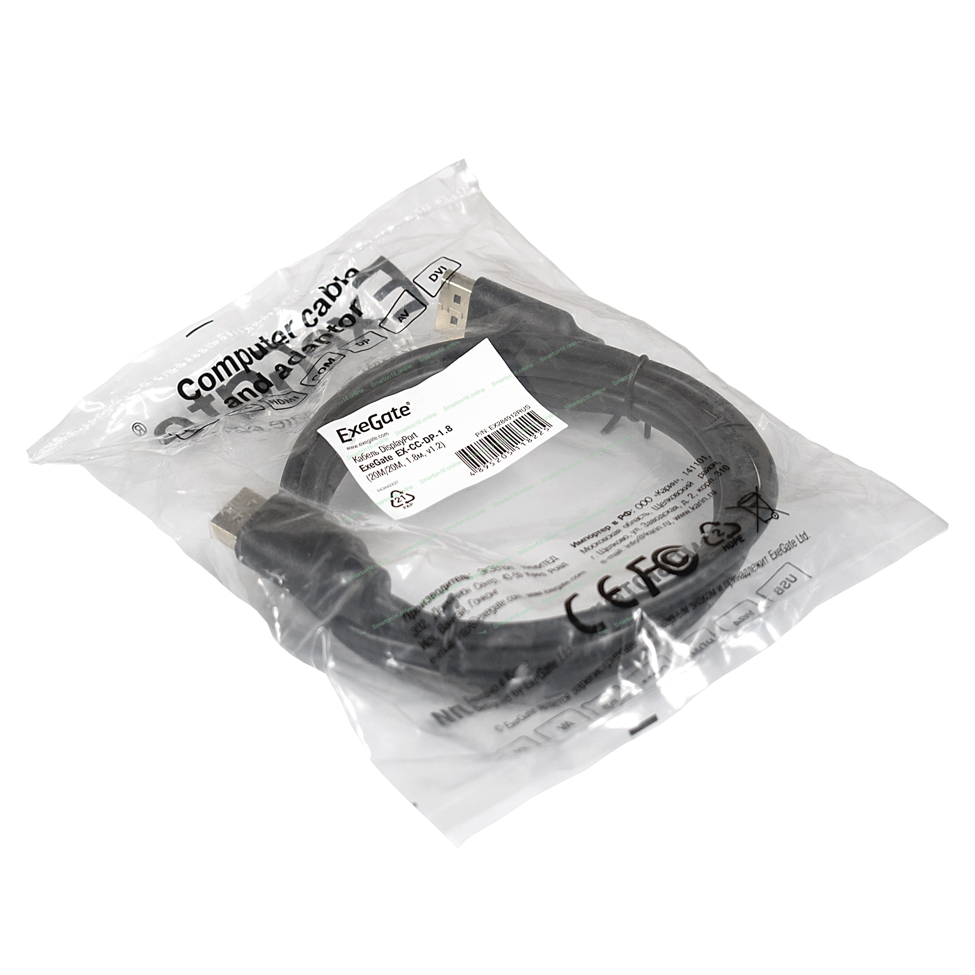 Кабель DisplayPort ExeGate EX-CC-DP-1.8 (20M/20M, 1,8м, v1.2)