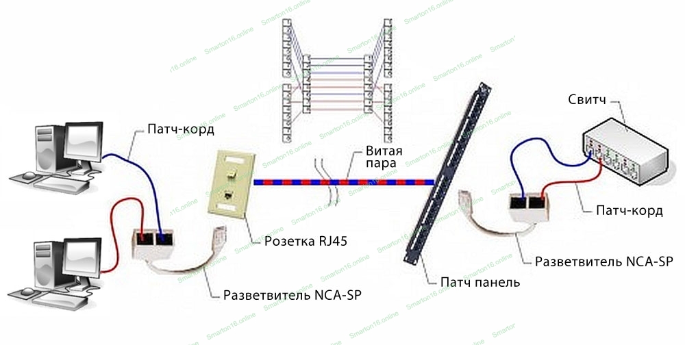 Разветвитель NCA-SP-02 FTP 1 порт RJ45 (T568A/T568B) -> 2 порта RJ45 10/100 BASE-T