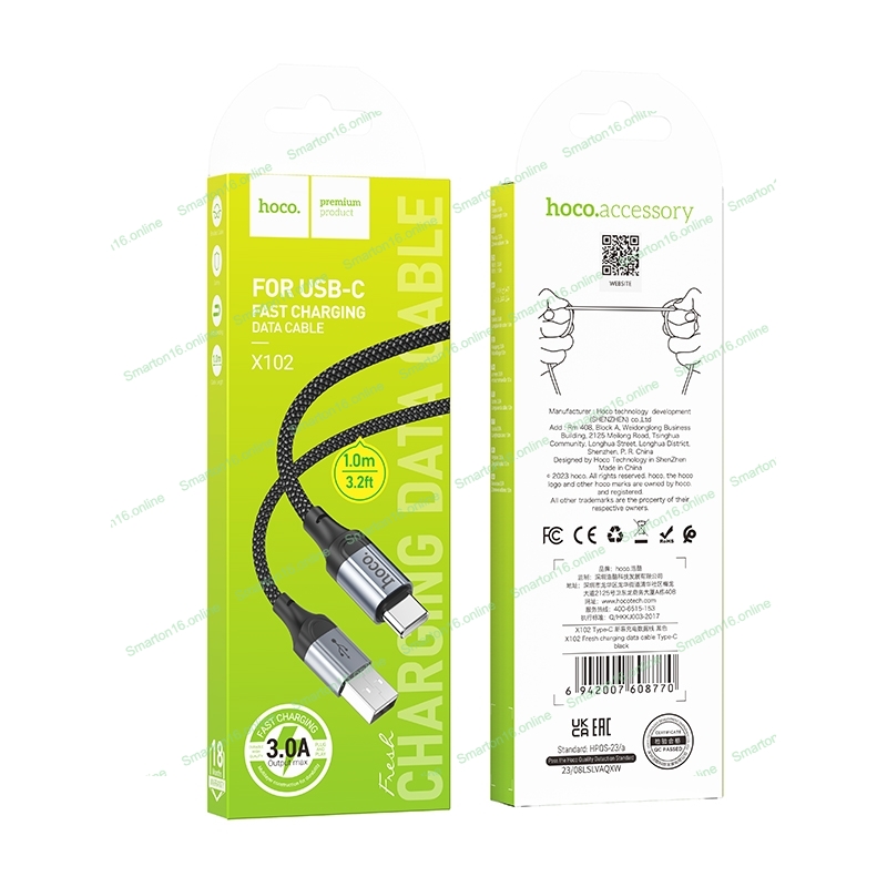 Кабель USB2.0 Hoco AM/Type-C, 3А, X102, 1м, черный, коробка
