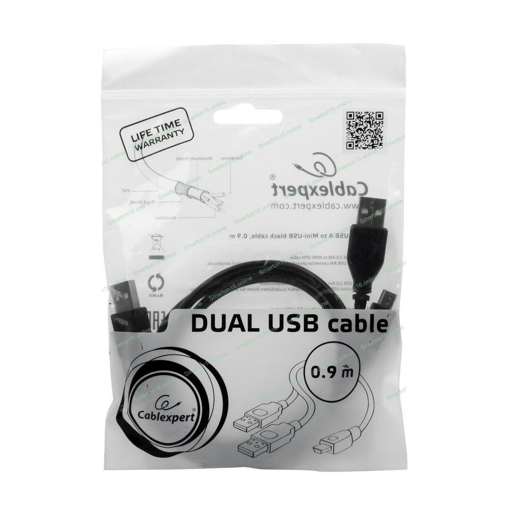 Кабель Gembird/Cablexpert USB 2.0 Pro, 2xAM/miniBM 5P, 0.9м, экран, черный