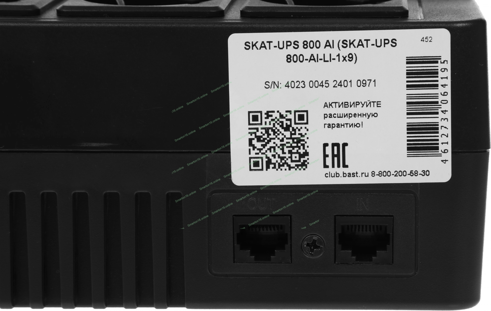 Источник бесперебойного питания SKAT-UPS 800 AI ИБП 220В 480Вт 1 АКБ 9А.ч внутр. меандр. стаб-ция напр-я. 6 выходов Бастион 452