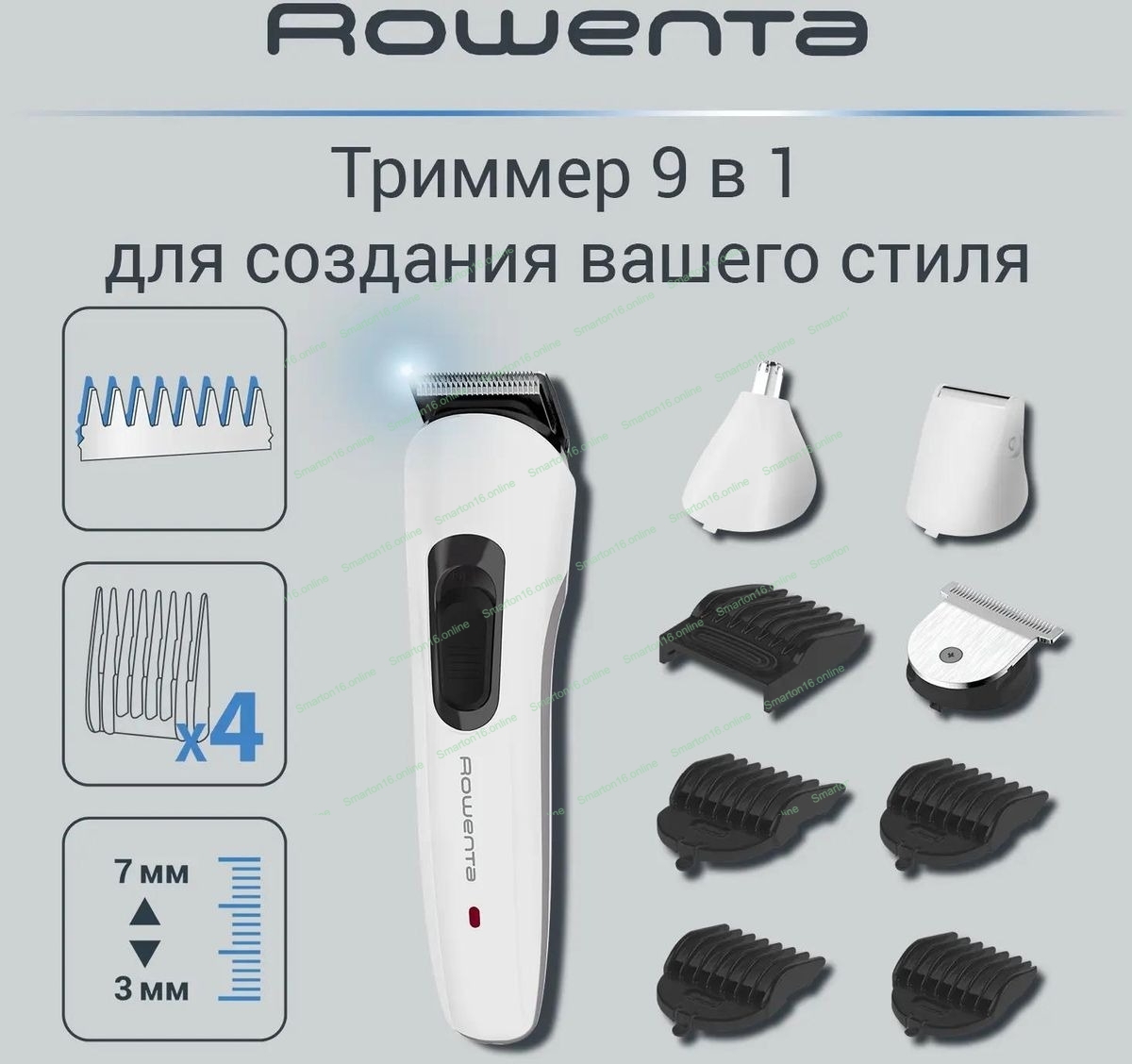 Триммер Rowenta TN8961F4 белый (насадок в компл:7шт)