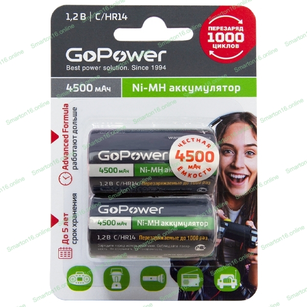 Аккумулятор бытовой GoPower HR14 C BL2 NI-MH 4500mAh блистер (2 шт.)