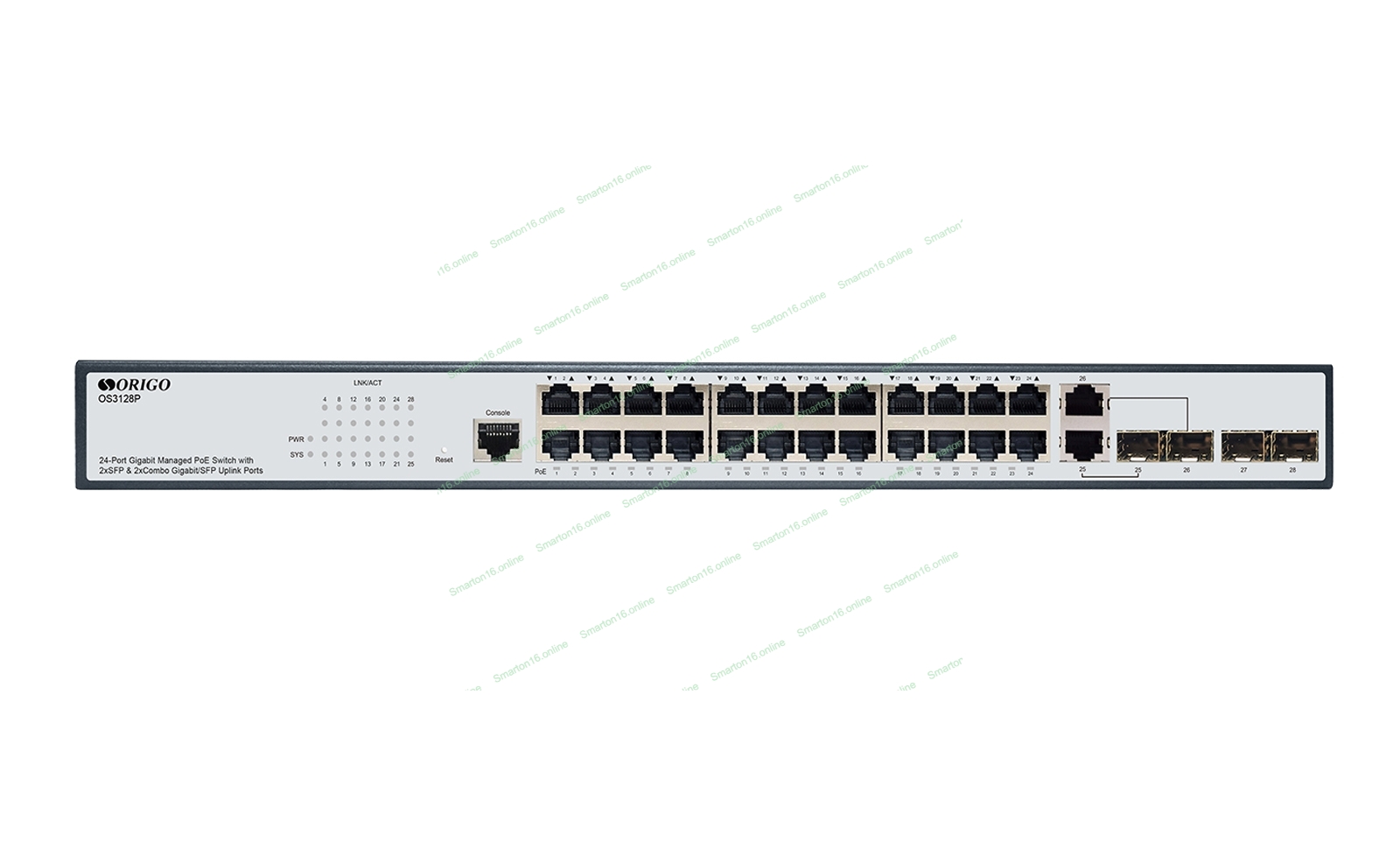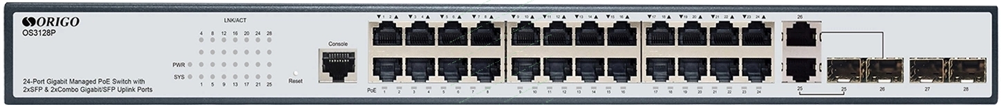 Коммутатор ORIGO Managed L2 Switch 24x1000Base-T PoE, 2x1000Base-X SFP, 2xCombo 1000Base-T/SFP, PoE Budget 250W, RJ45 Console, 19" w/brackets