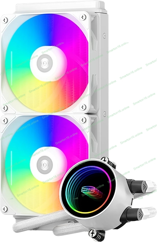 Система охлаждения PCCooler DA240 ARGB WH (270W, 240мм, белый, ARGB/ Fans: 2x120мм, 73.6CFM, -dBA, 1800RPM/ Pump height 55мм, -dBA, 3000RPM, Rad thickness 27мм/ S: 1851, 1700, 1200, 20XX, 115X, AM5, AM4)