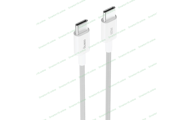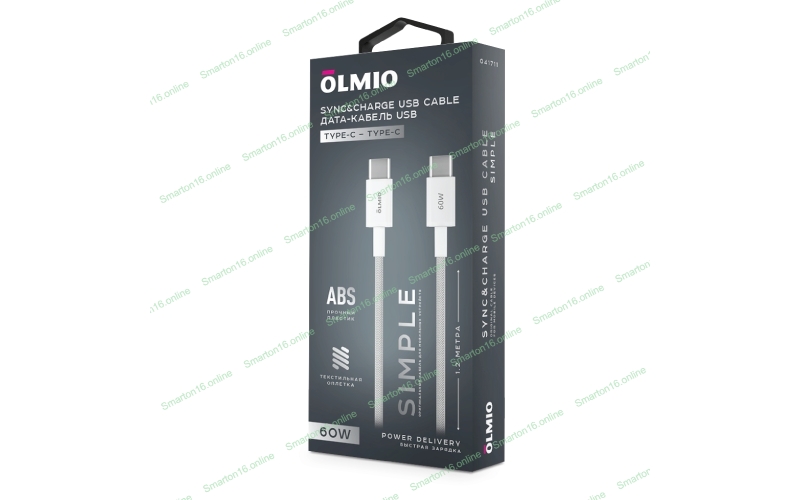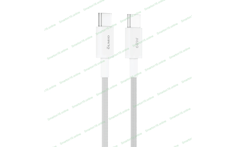 Кабель OLMIO SIMPLE, Type-C - Type-C, 60W 3A, 1.2м, тканевая оплетка, белый