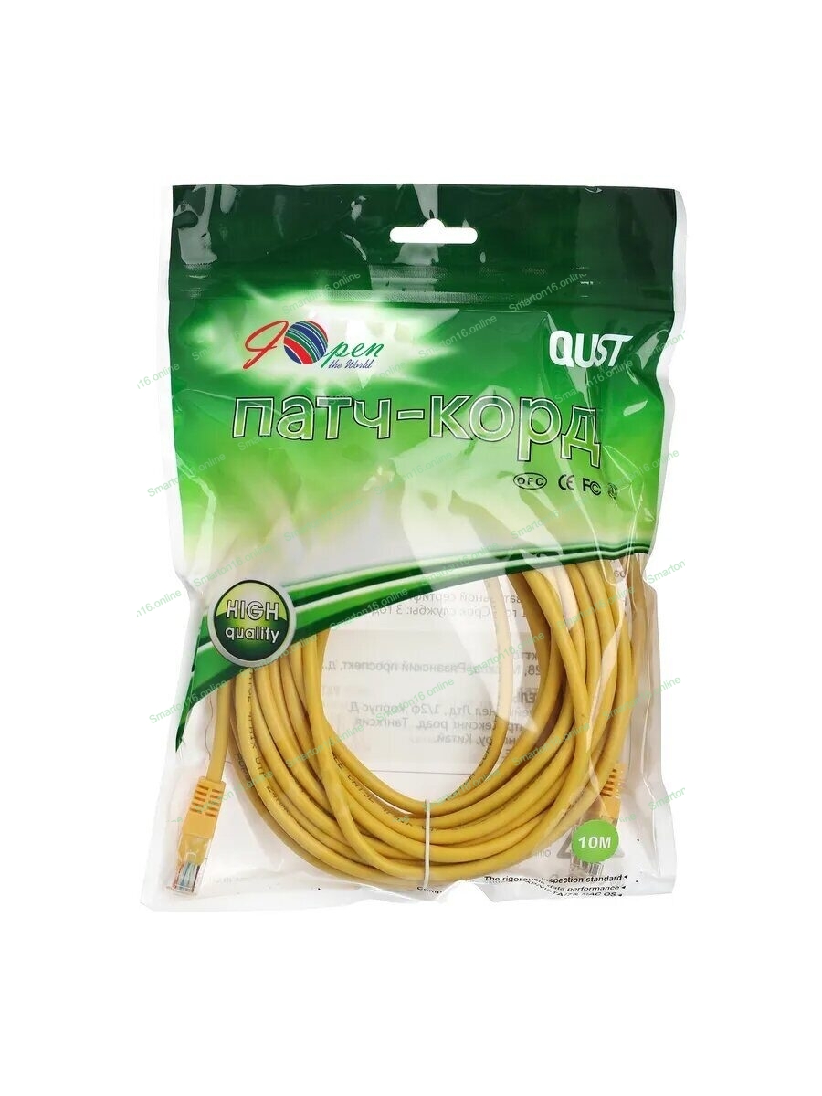 Патчкорд литой, UTP, категории 5е. Пассивный элемент структурированной кабельной системы (до 150МГц), служит для подключения одного элемента сети к другому. Обычно патчкорд используют для подключения компьютеров к розеткам в локальной кабельной сети, также для соединения патчпанелeй в телекоммуникационных стойках. Возможны другие подключения различных приборов, имеющих соответствующие разъемы.