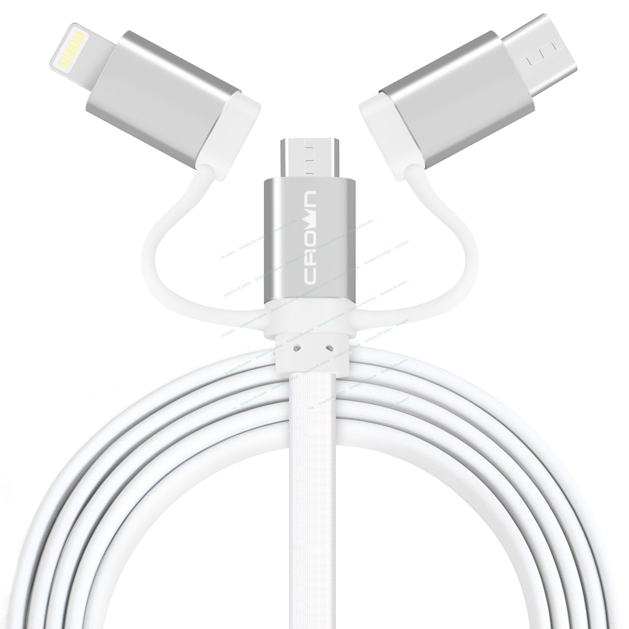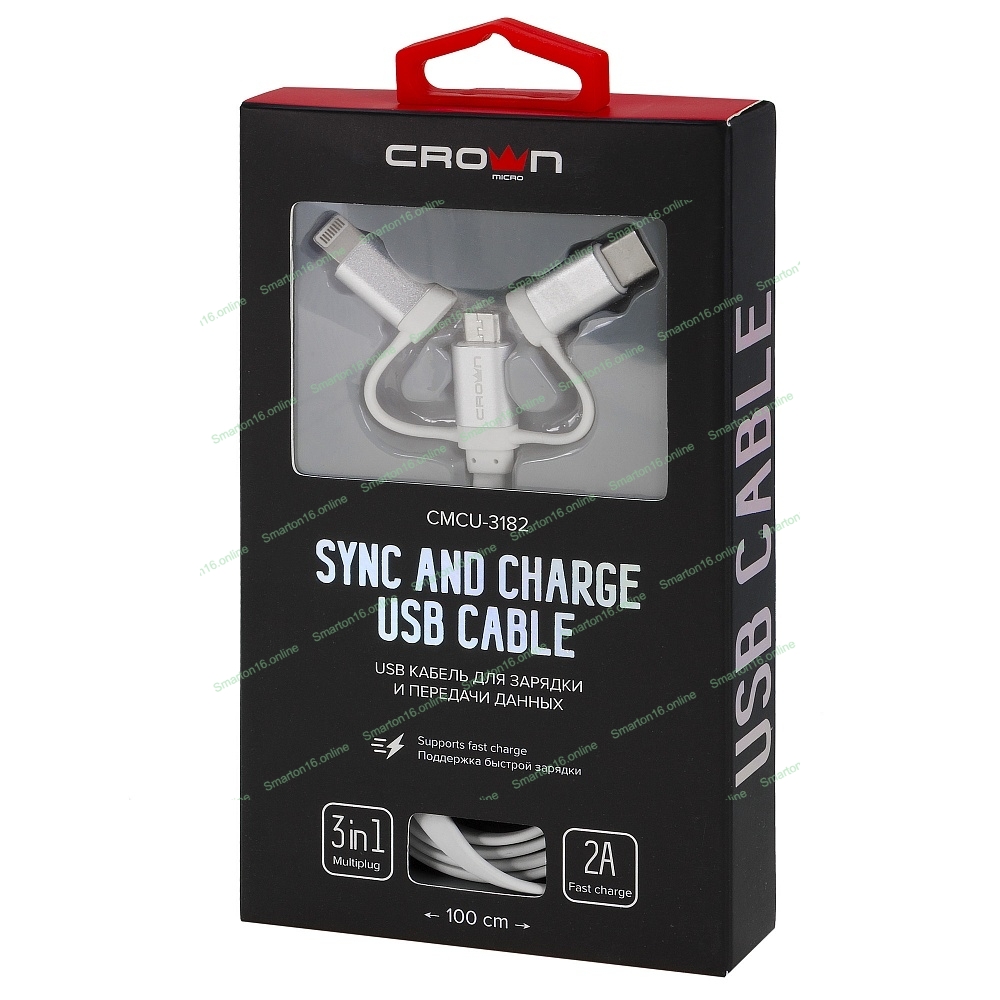 Кабель Crown USB - microUSB/USB Type-C/Lightning CMCU-3182 белый
