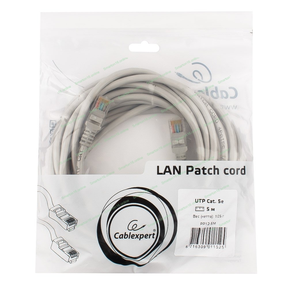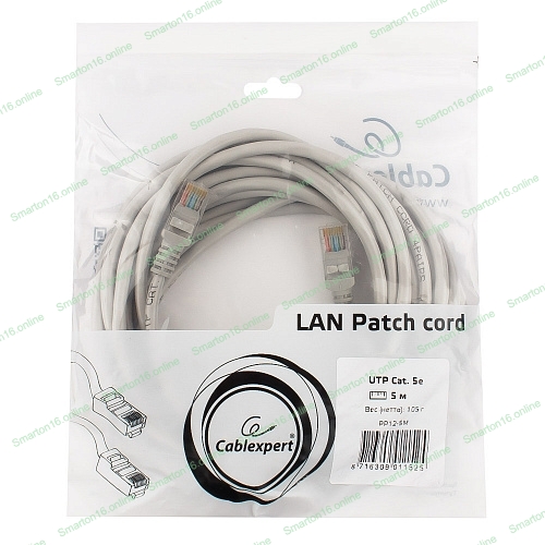 Патч-корд UTP Cablexpert cat.5e, 5м, литой, многожильный серый