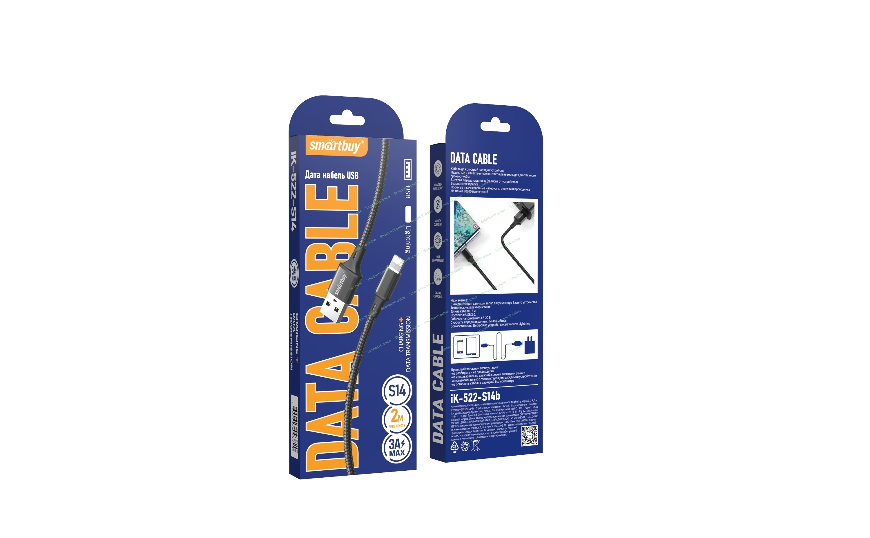 Кабель Smartbuy (iK-522-S14b) S14 Lightning черный, 3 А, 2 м,