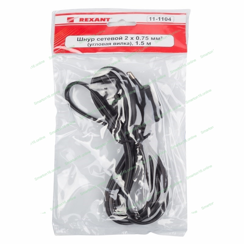 Шнур сетевой Rexant вилка угловая - евроразъем С7, кабель 2x0,75 мм², длина 1,5 м. (PVC пакет)