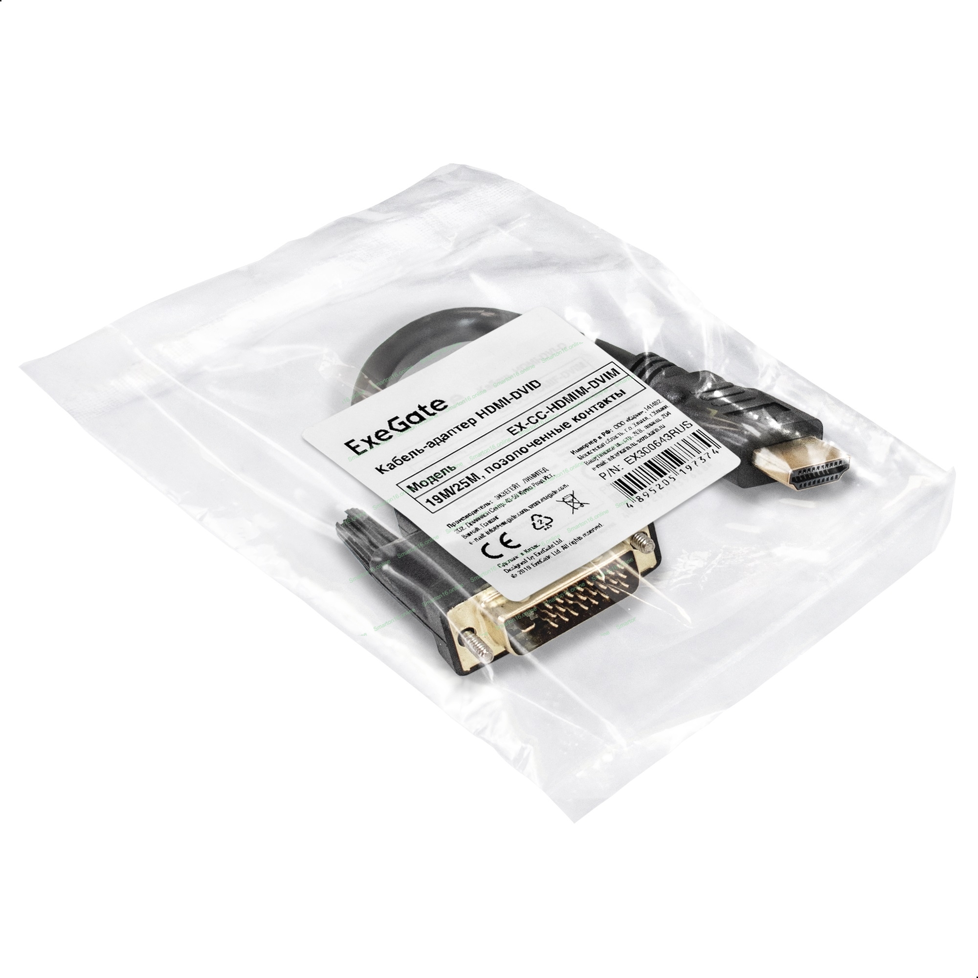 Кабель-адаптер HDMI-DVI-D ExeGate EX-CC-HDMIM-DVIM (19M/25M, позолоченные контакты)