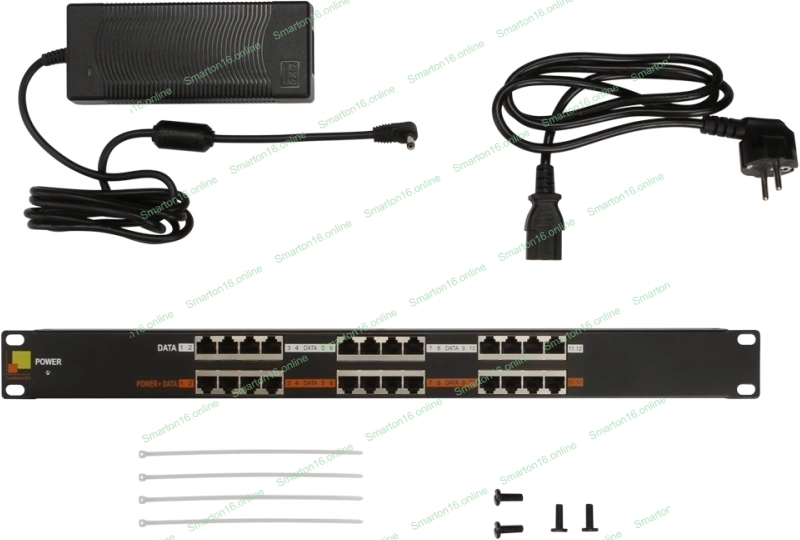 Панель POE 19", 12 портов, с одним блоком питания 48V, 120W