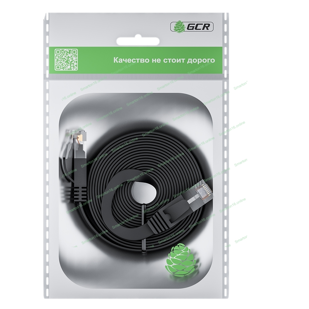 Патч-корд GCR PROF плоский прямой 3.0m, UTP медь cat.6, черный, 30 AWG, ethernet high speed 10 Гбит/с, RJ45, T568B, GCR-52870