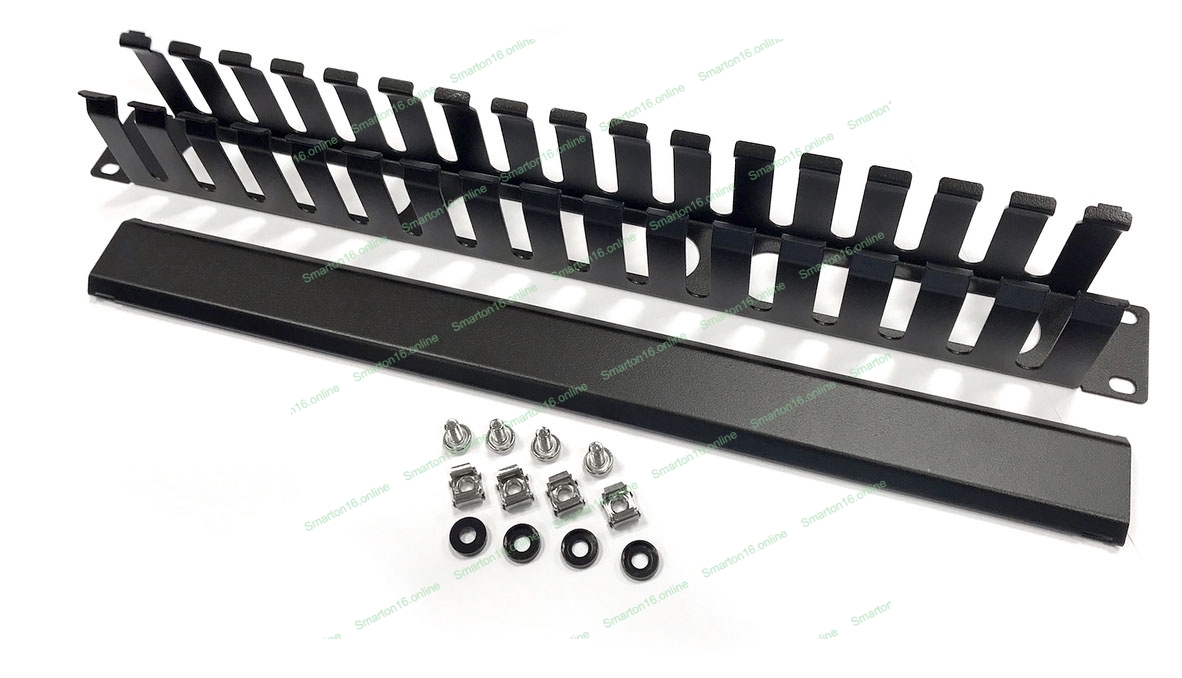 Организатор комм. шнуров Hyperline CM, 19", 1HU, 44х482,5х67 мм (ВхШхГ), с крышкой , цвет: черный