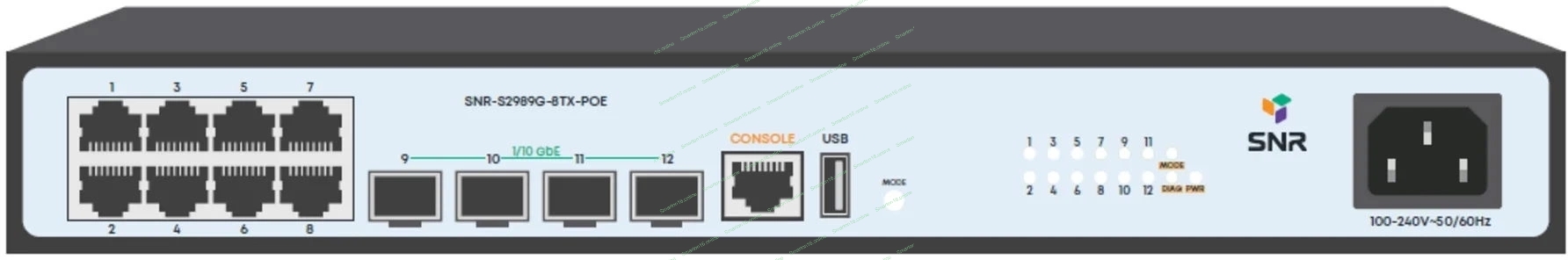 Коммутатор POE управляемый уровня 2, 8 портов 10/100/1000Base-T с поддержкой PoE, 4 порта 1/10G SFP+, POE 125 Ватт