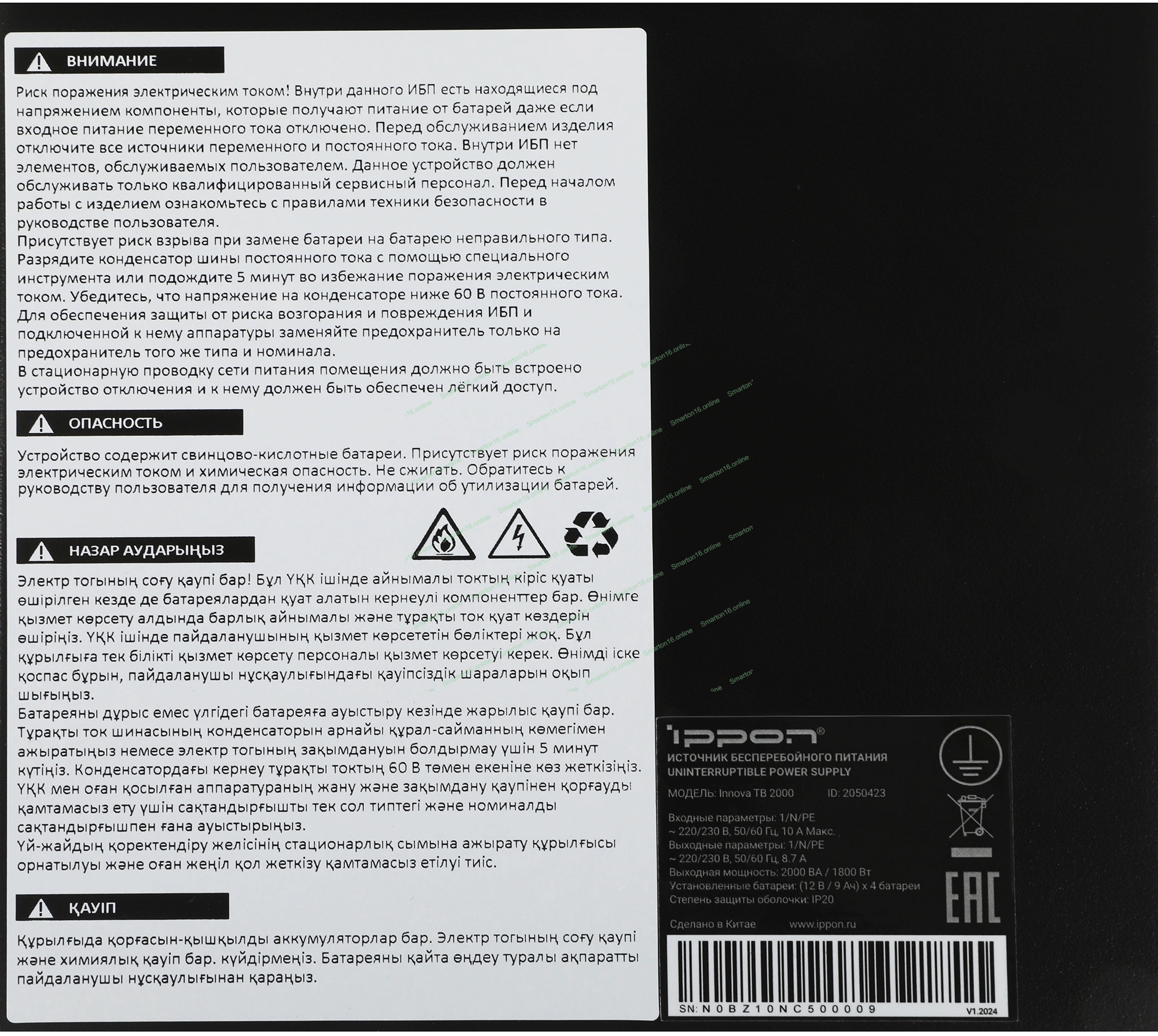 Источник бесперебойного питания Ippon Innova Tb 2000 1800Вт 2000ВА черный