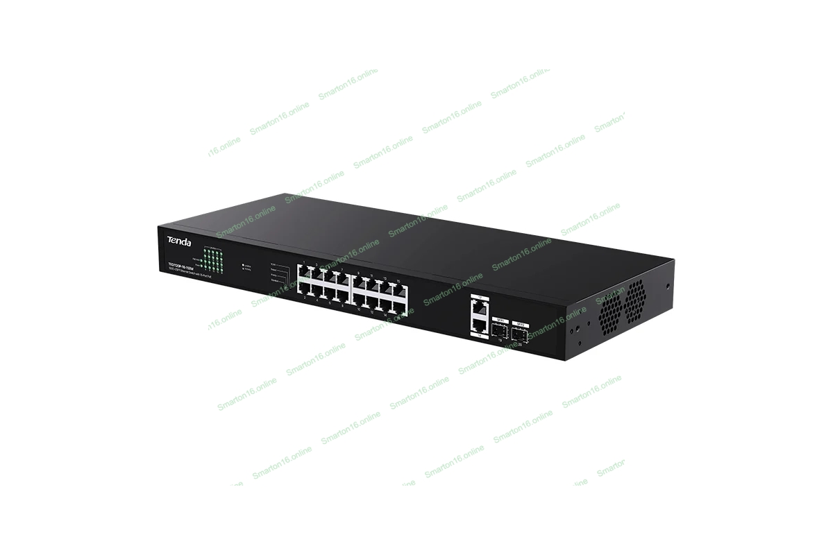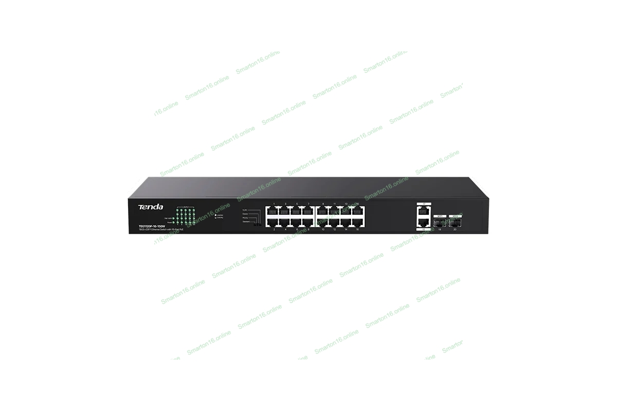 Коммутатор неуправляемый PoE Tenda TEG1120P-16-150W 18 портов, 18x1 Гбит/с, PoE 16х30 Вт (до 150Вт), SFP 2x1 Гбит/с