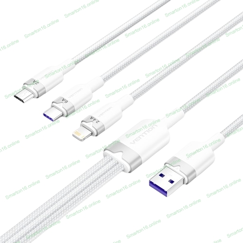 Кабель Vention 3 в 1 USB 2.0 AM/Micro-B, USB-C, Lightning M 1.5м. белый 6A, шт.