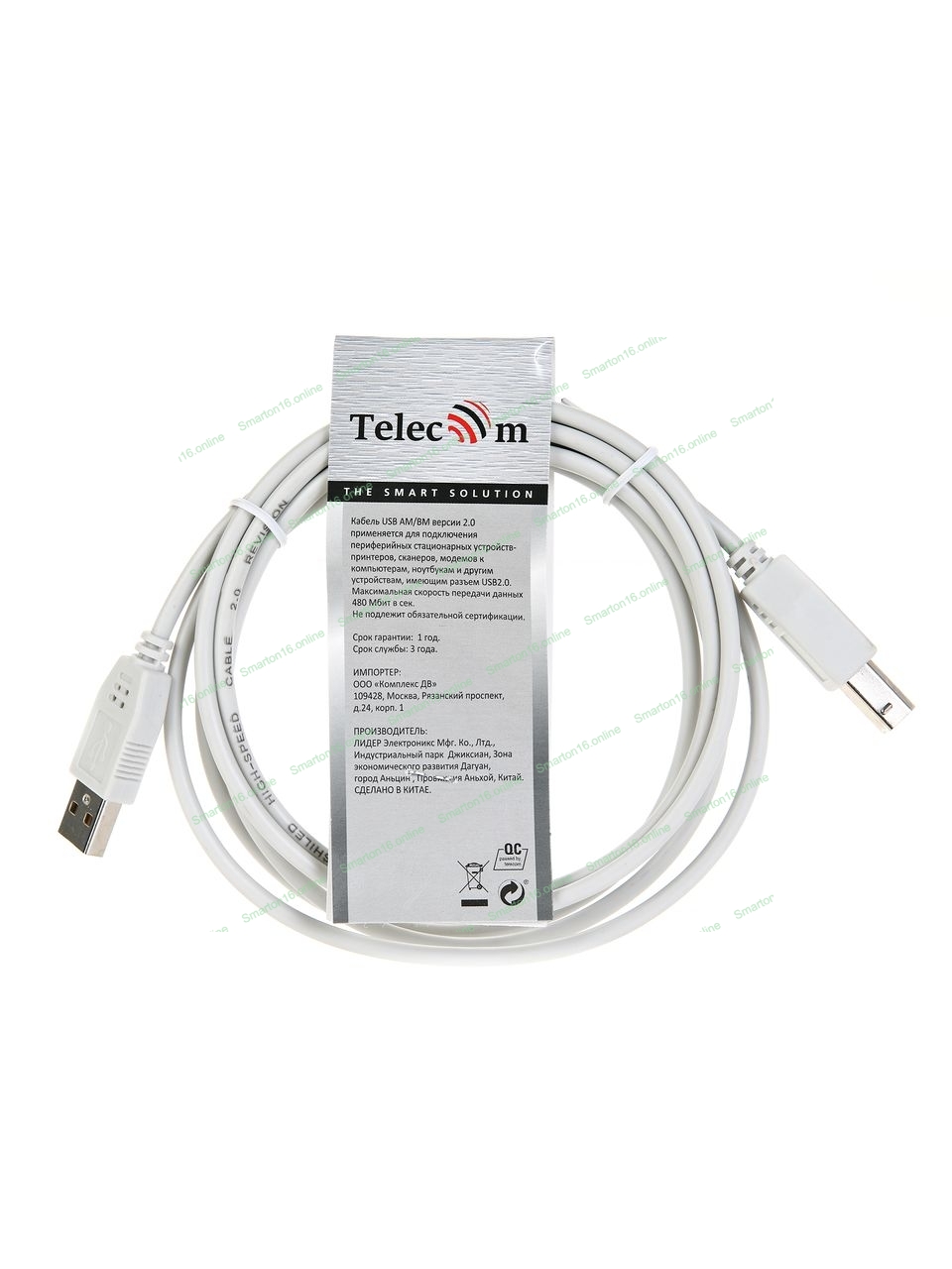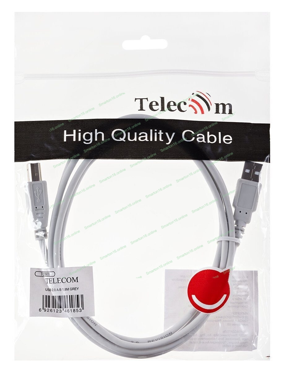 Telecom TC6900. Кабель USB AM/BM версии 2.0 применяется для подключения периферийных стационарных устройств- принтеров, сканеров, модемов к компьютерам, ноутбукам и другим устройствам,имеющим разъем USB2.0. Максимальная скорость передачи данных 480 Мбит в сек.