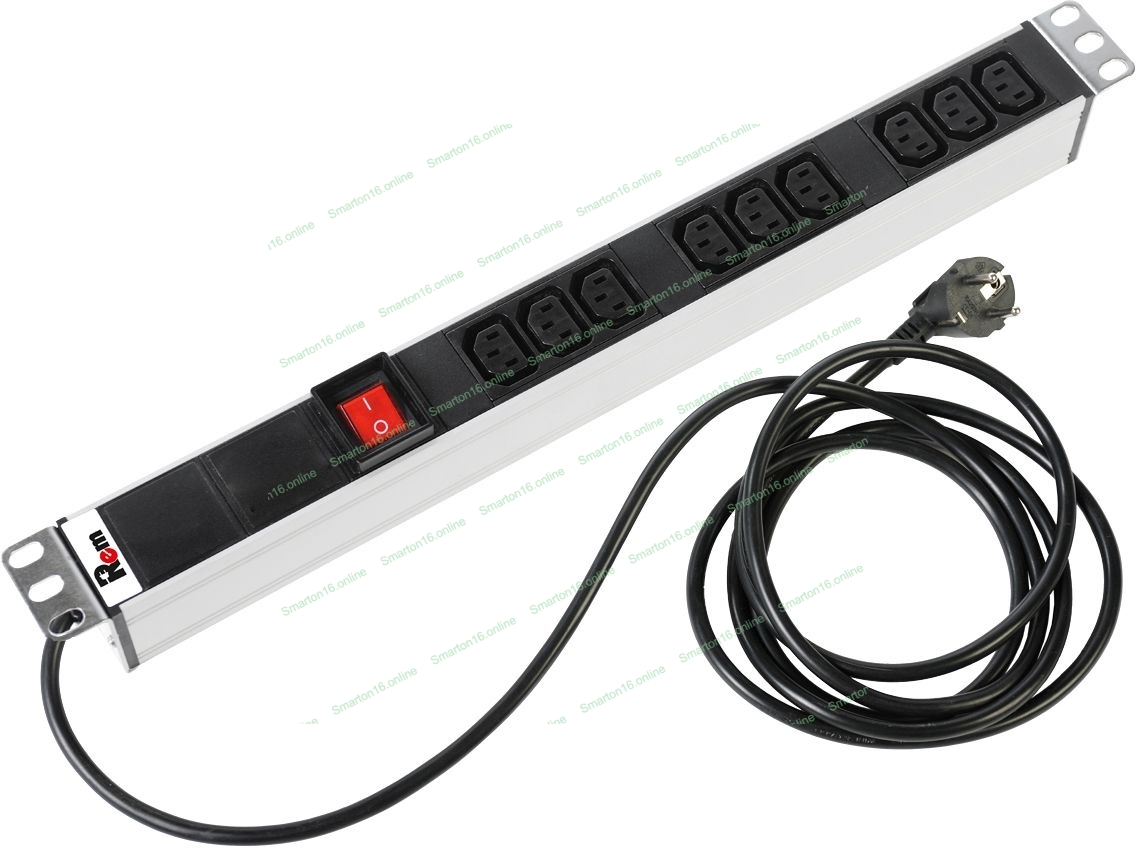 Аксессуар ЦМО Блок розеток Rem-16 с выкл., 9 IEC 60320 C13, 16A, алюм., 19", шнур 1,8 м. (R-16-9C13-V-440-1.8)