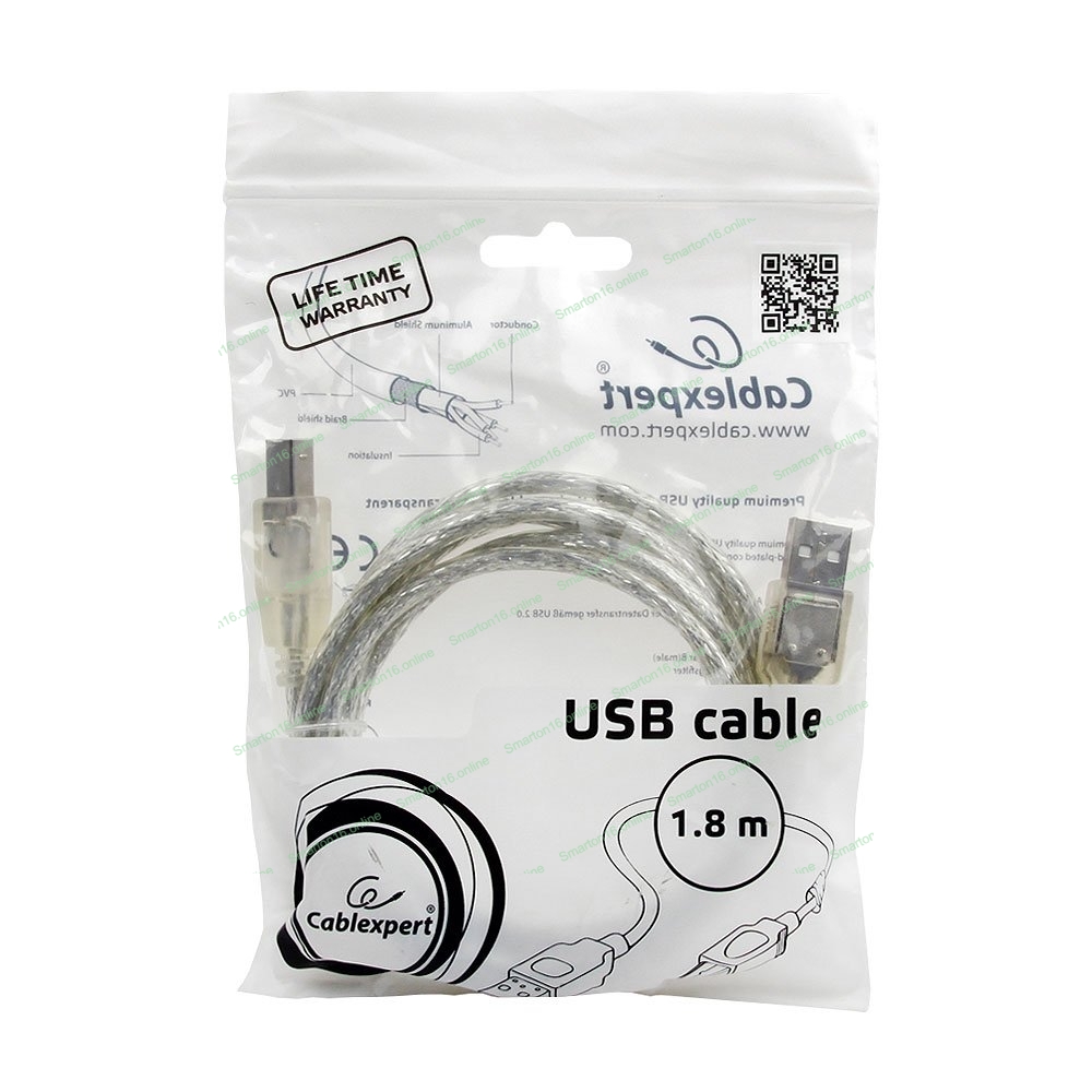 Кабель USB2.0 Pro Cablexpert CCF-USB2-AMBM-TR-6, AM/BM, 1,8м, экран, феррит.кольца, прозрачный, пакет