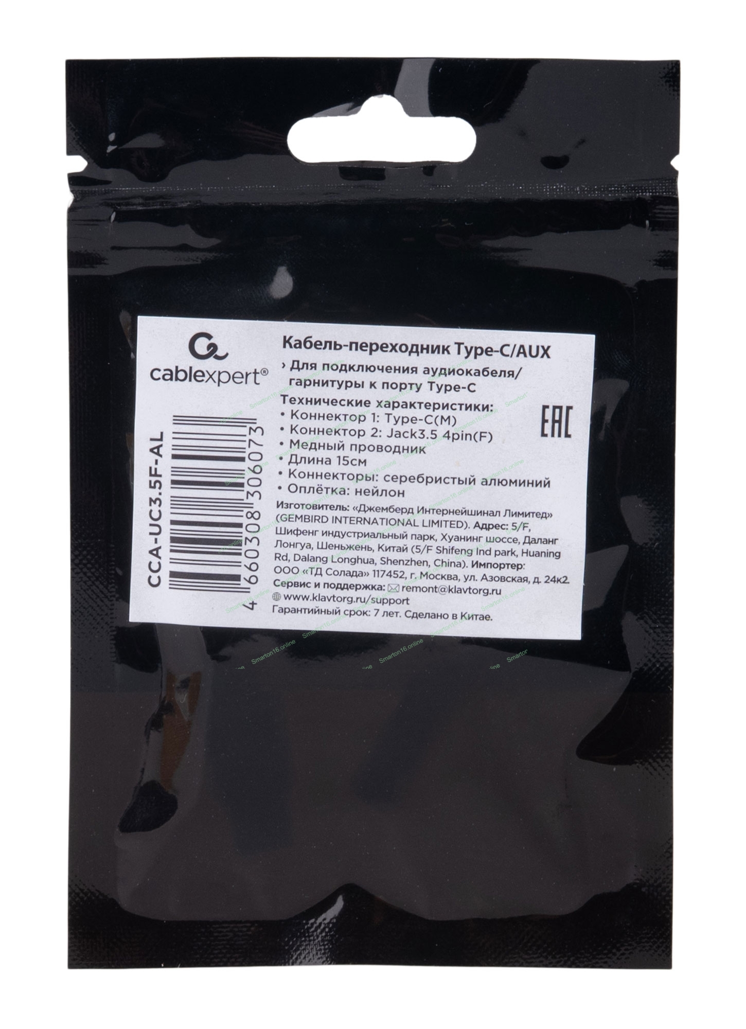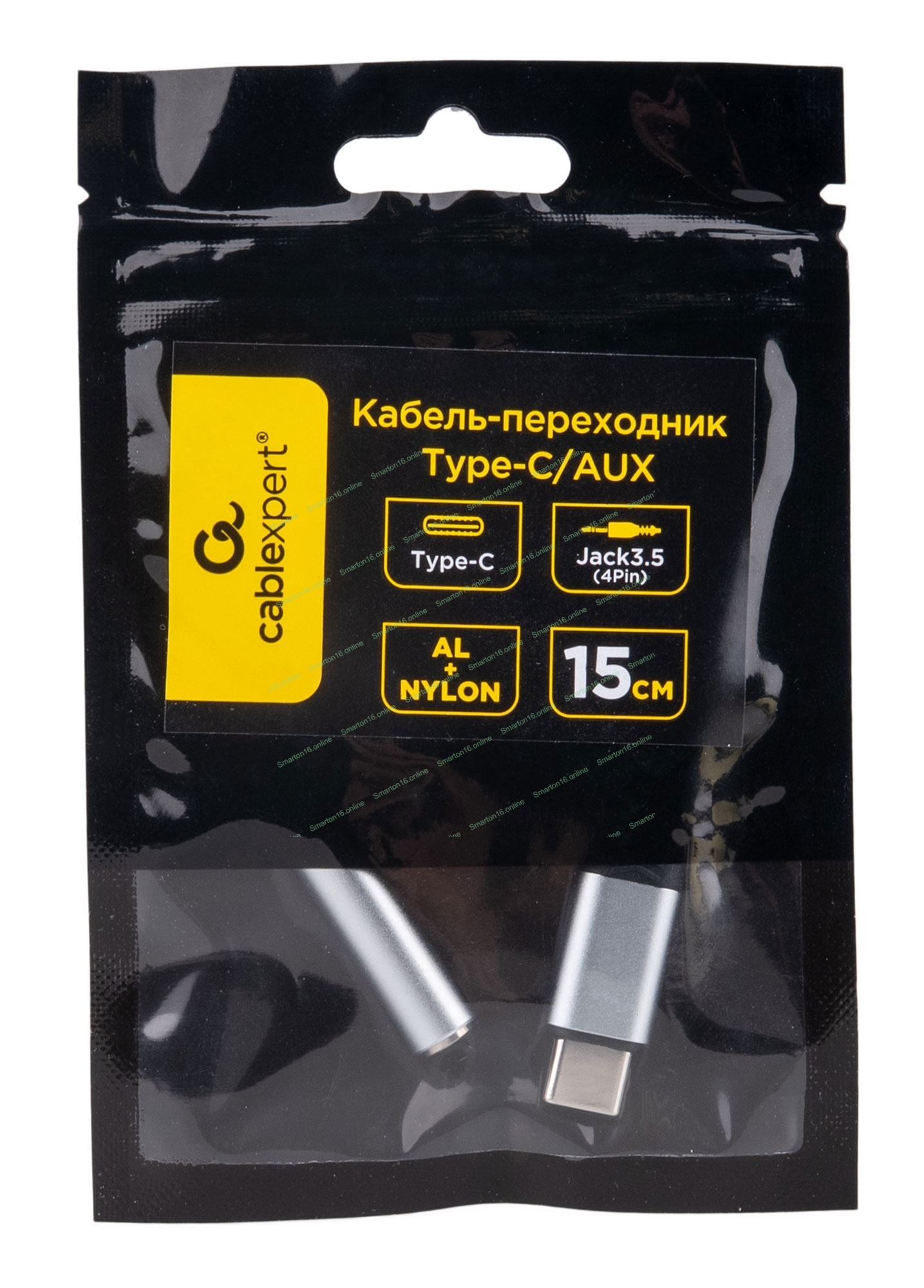 Кабель-переходник AUX Cablexpert CCA-UC3.5F-AL Type-C(M)/Jack3.5(F), алюминий+нейлон.оплётка, 0.15м, пакет