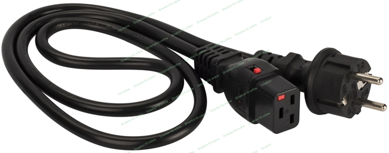 Шнур питания Lanmaster с блокировкой C19-Schuko прямая, 3х1.5, 220В, 16А, черный, 2 метра