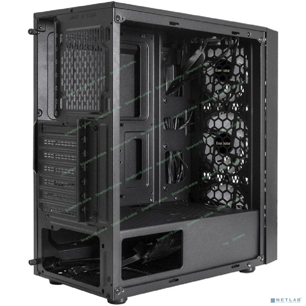 Компьютерный корпус Miditower ExeGate EVO-8243 (ATX, без БП, 2хUSB+1хUSB 3.0, черный, 3 вент. с RGb подсветкой, боковая панель - закаленное стекло)