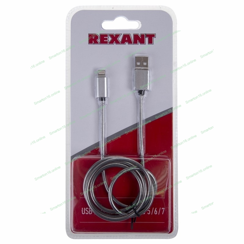 Кабель USB Rexant для iPhone 5/6/7 моделей, шнур в металлической оплетке серебристый