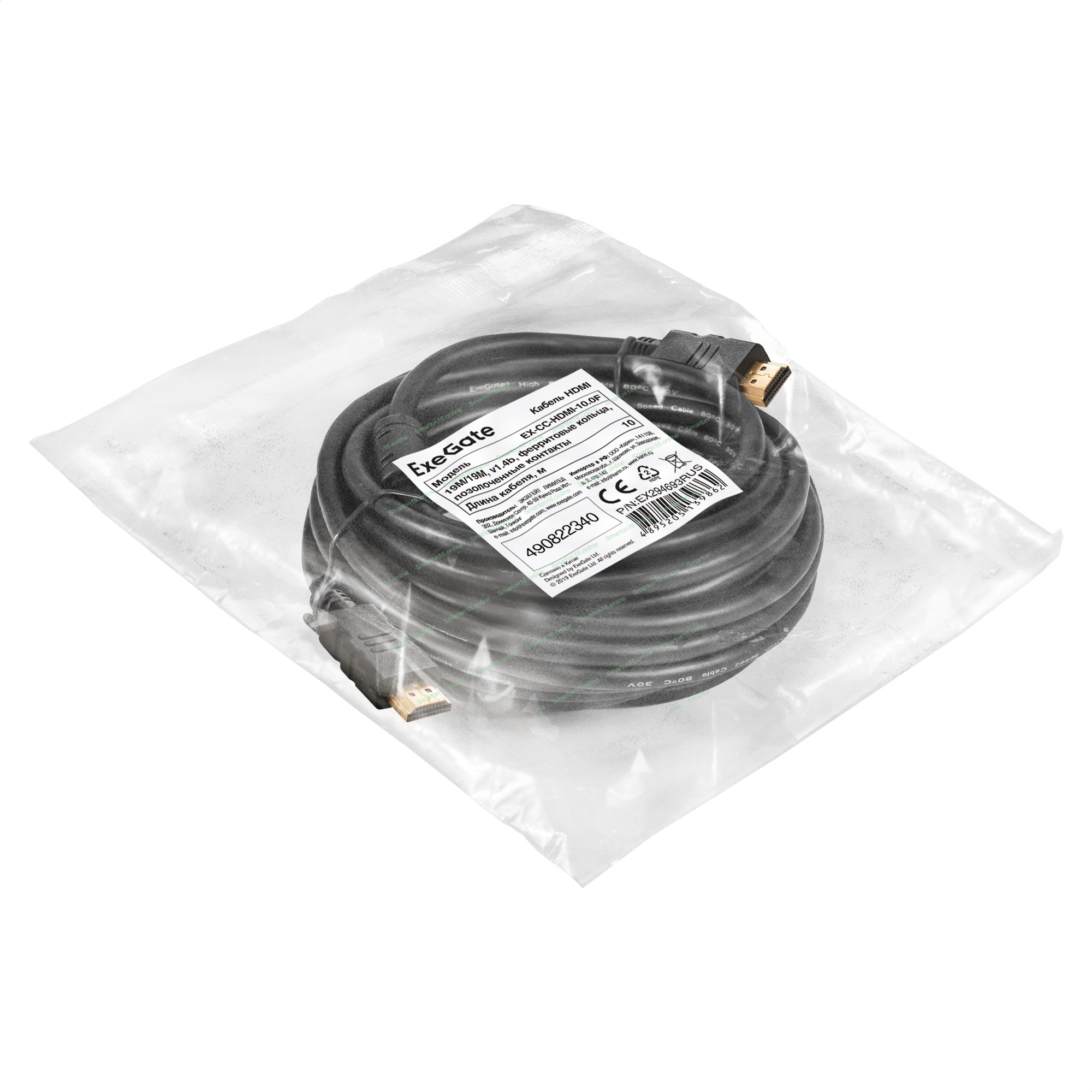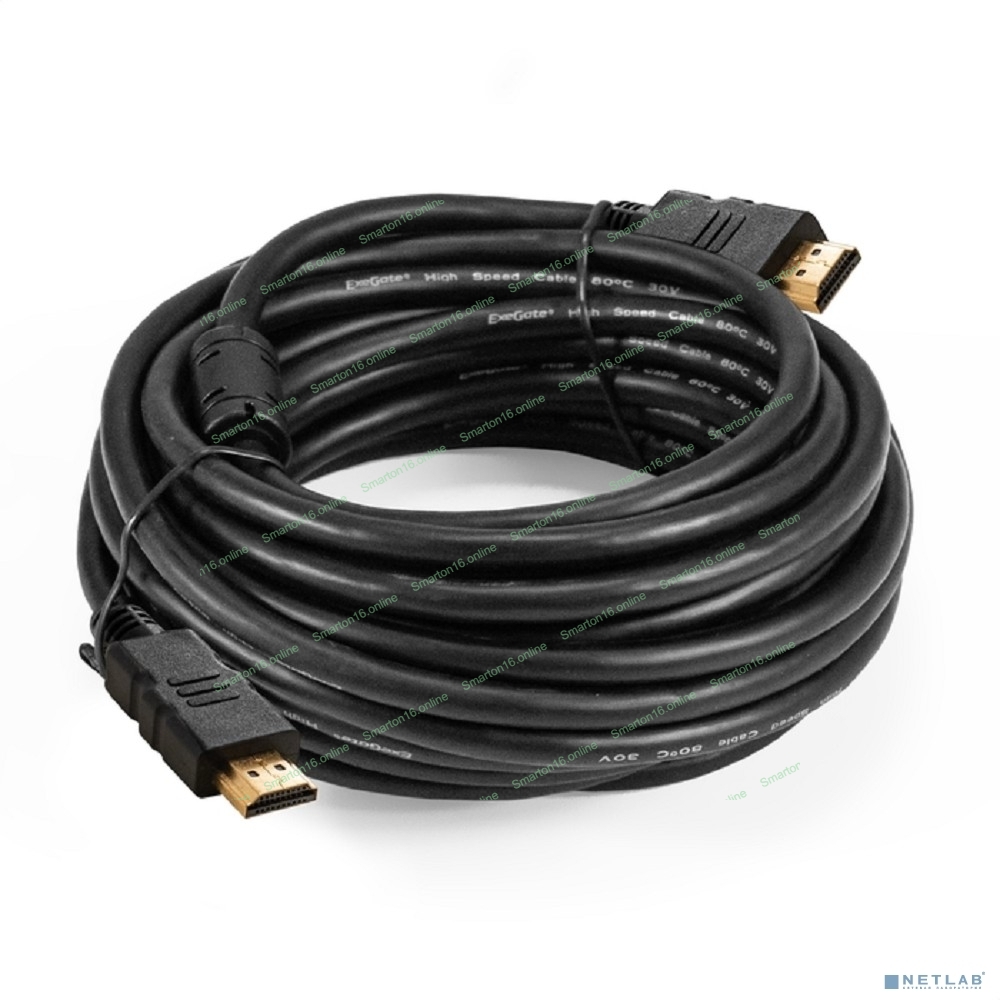 Кабель HDMI ExeGate EX-CC-HDMI-10.0F (19M/19M, 10м, v1.4b, ферритовые кольца, позолоченные контакты)