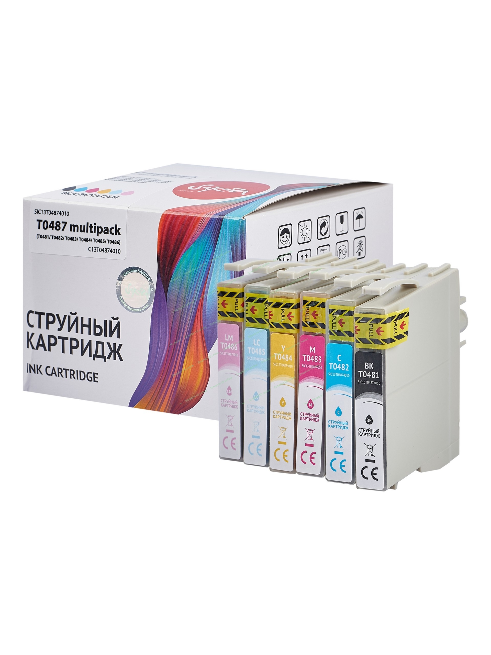 Набор струйных картриджей Sakura C13T04874010 (T0487-T0481/T0482/T0483/T0484/T0485/T0486) для Epson, мультипак, 16 мл., 460 к.