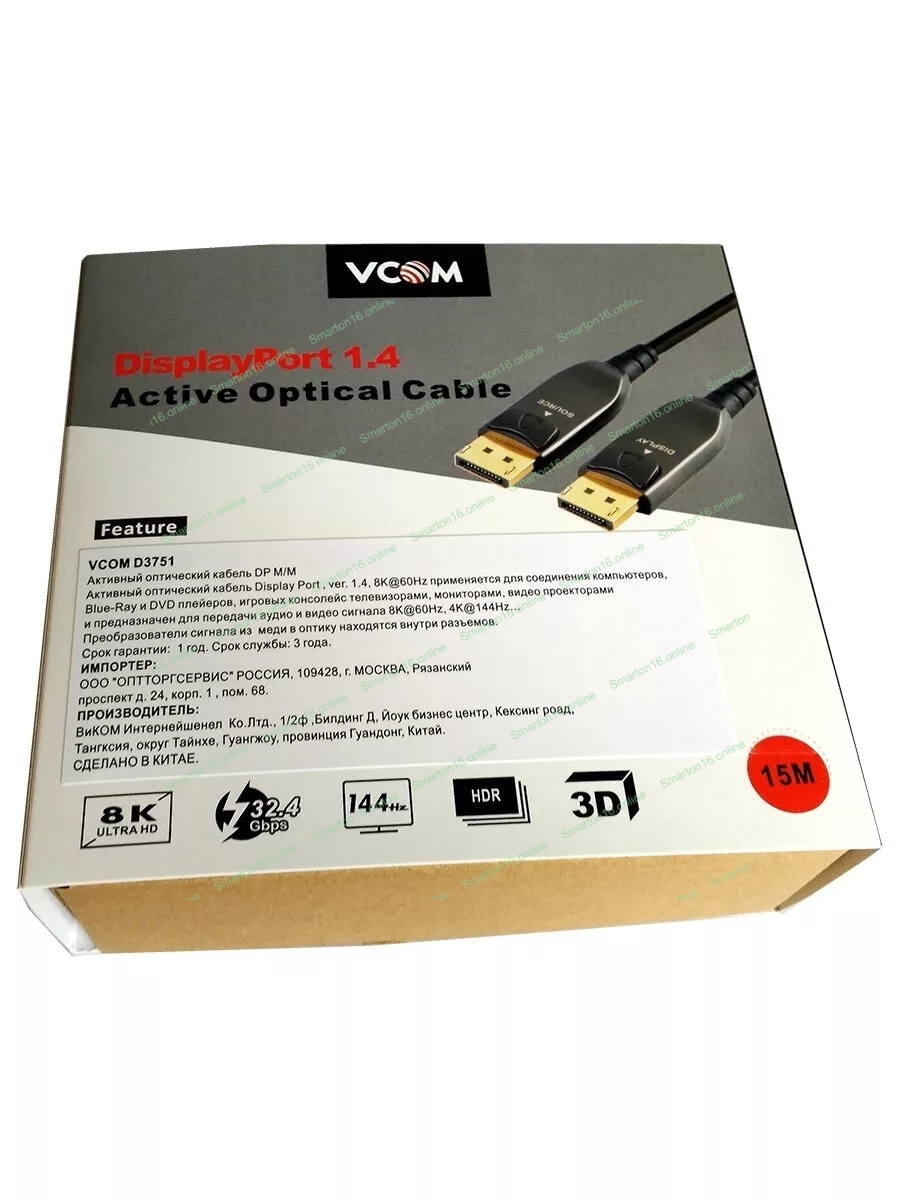 Высокоскоростной активный оптический кабель DisplayPort версии 1.4 применяется для соединения компьютеров, Blue-Ray и DVD плейеров, игровых консолей, видео и фото камер с телевизорами, мониторами, видео проекторами и предназначен для передачи аудио и видео сигнала