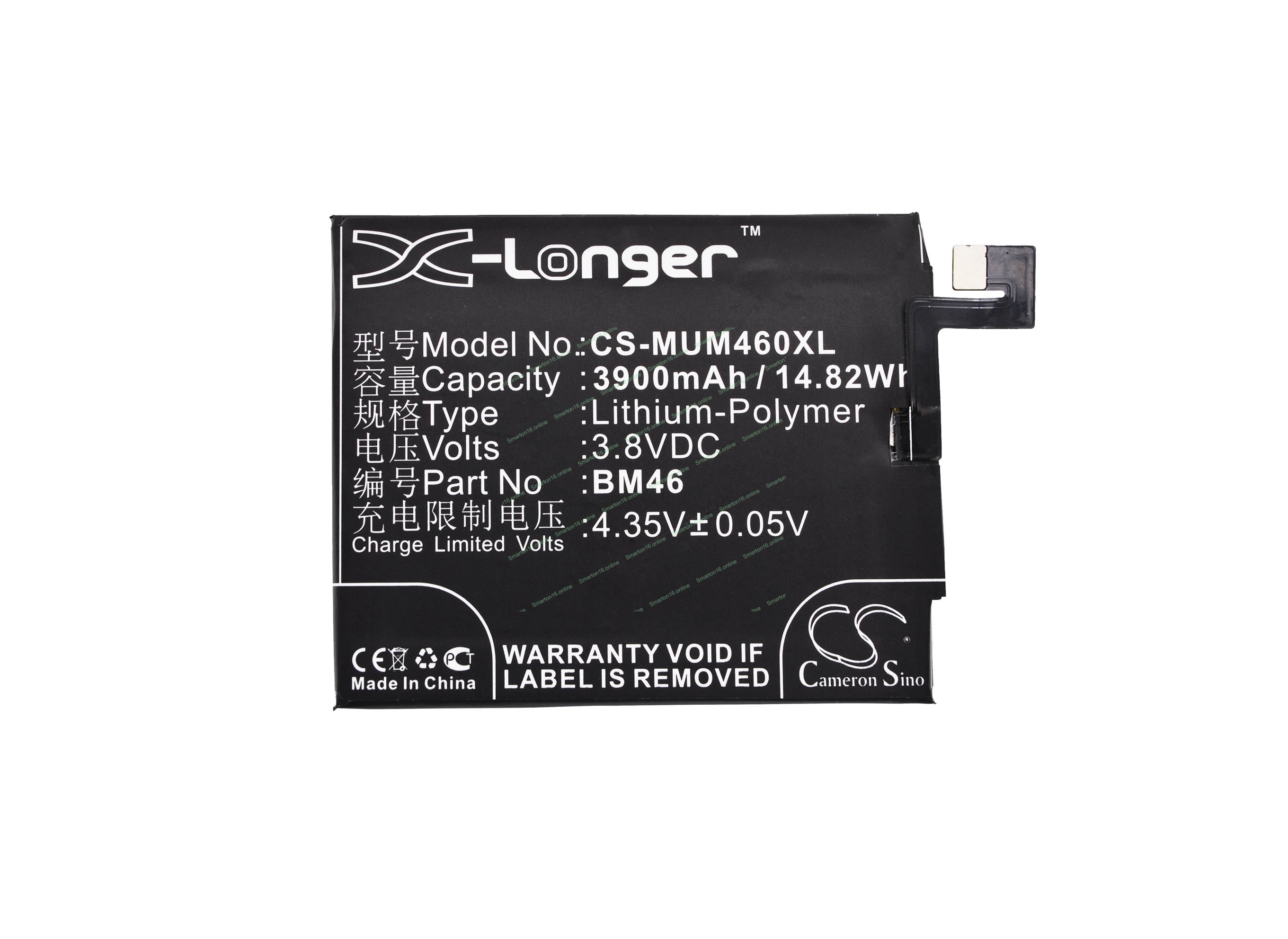 Аккумулятор CameronSino CS-MUM460XL (BM46) для Xiaomi Redmi Note 3 3.8V, 3900mAh, 14.82Wh