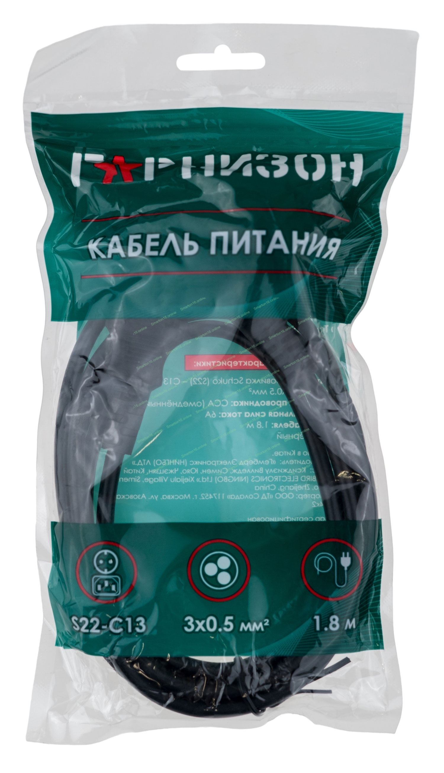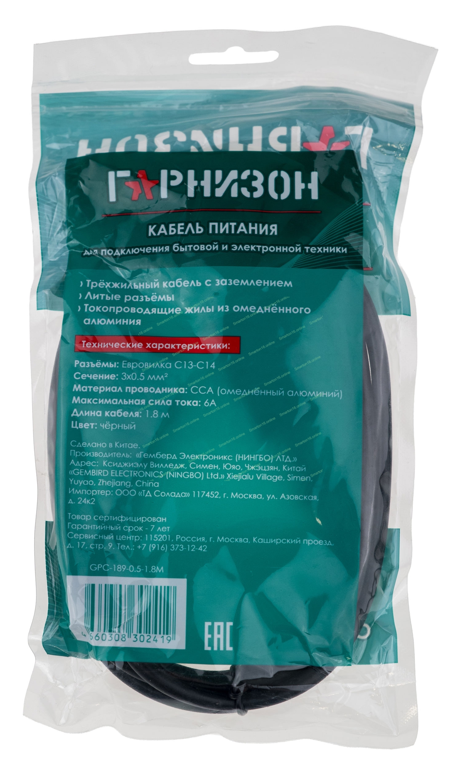 Кабель питания Гарнизон GPC-186-0.5-1.8M, Schuko-C13, 3x0.5мм2, 6A, CCA, с заземлением, 1.8м, черный, пакет