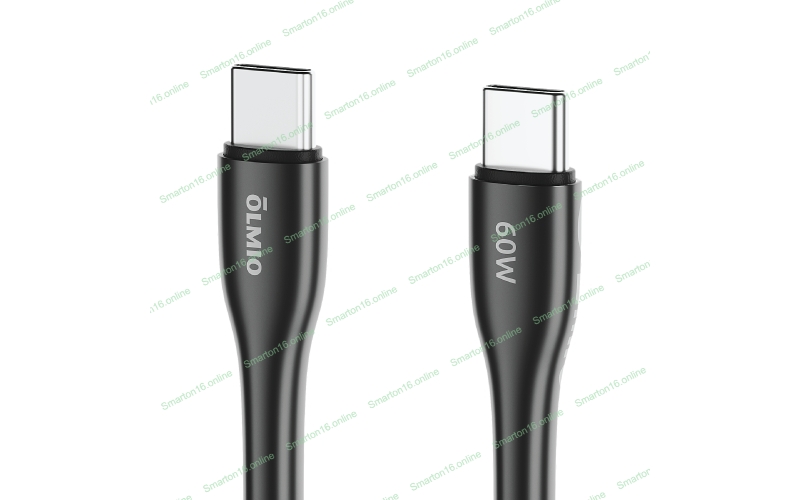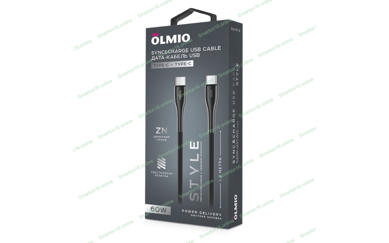 Кабель OLMIO STYLE, Type-C - Type-C, 60W, 1.2м, тканевая оплетка, черный