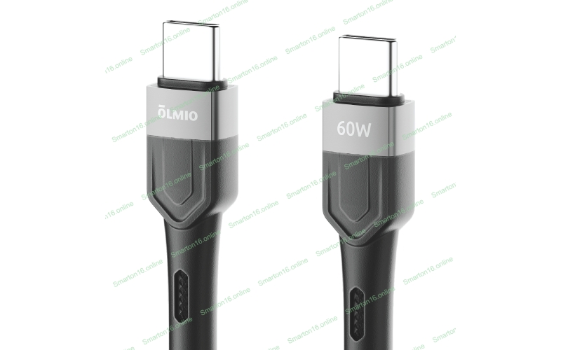 Кабель OLMIO BOLT, Type-C - Type-C, 60W, 1.2м, тканевая оплетка, черный