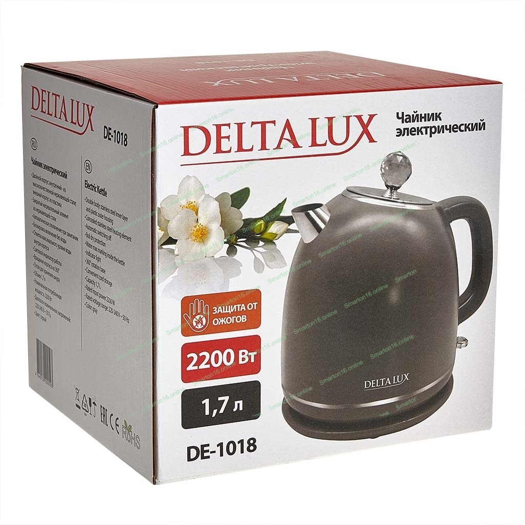 Чайник электрический Delta LUX DE-1018 (1,7 л. металл/пластик) серый