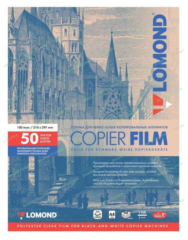 Пленка Lomond PE DS Film прозрачная, двусторонняя, А4, 100 мкм, 50 листов, для ч/б копиров.