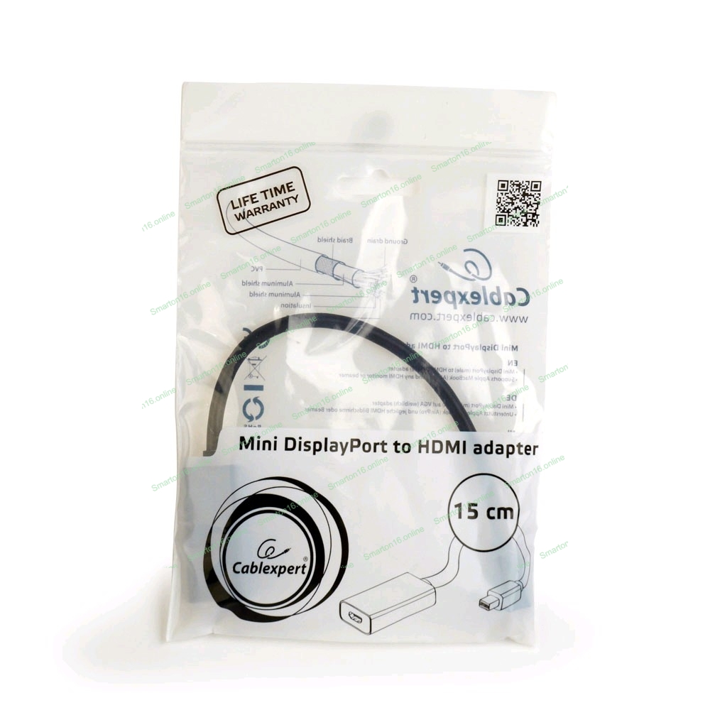 Переходник miniDisplayPort - HDMI, Cablexpert A-mDPM-HDMIF-02, 20M/19F, кабель 15 см, черный, пакет