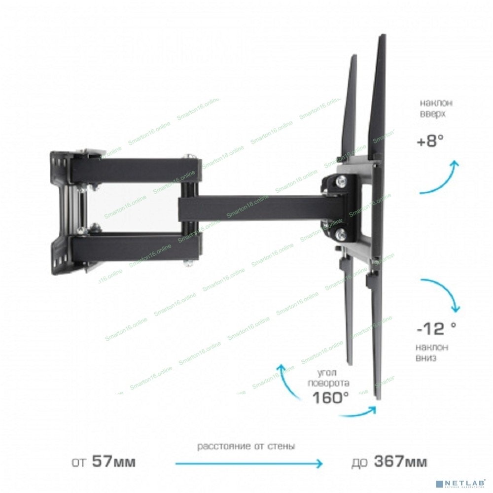 Кронштейн для телевизора Arm Media LCD-417 черный 26"-55" макс.35кг настенный поворотно-выдвижной и наклонный